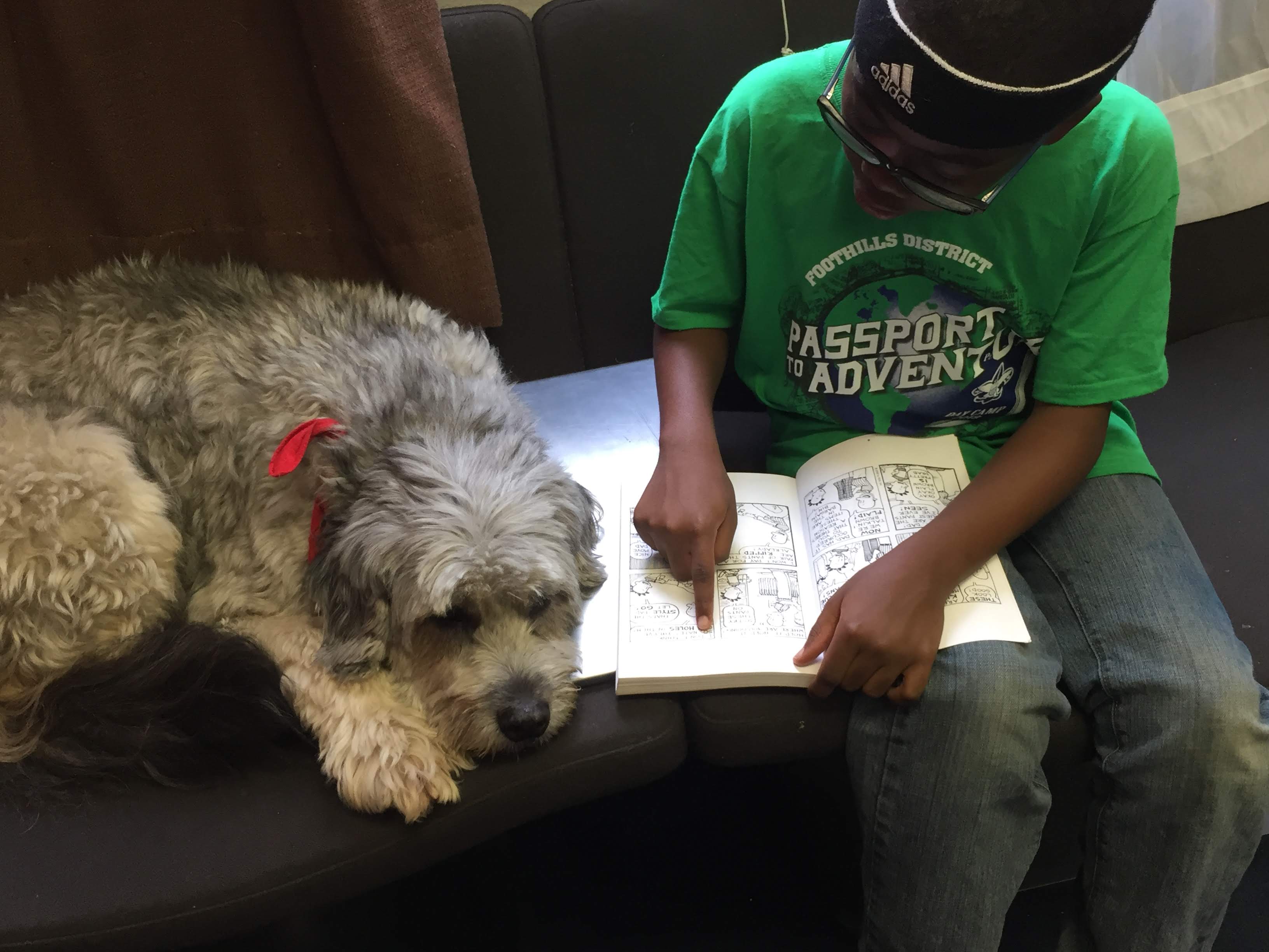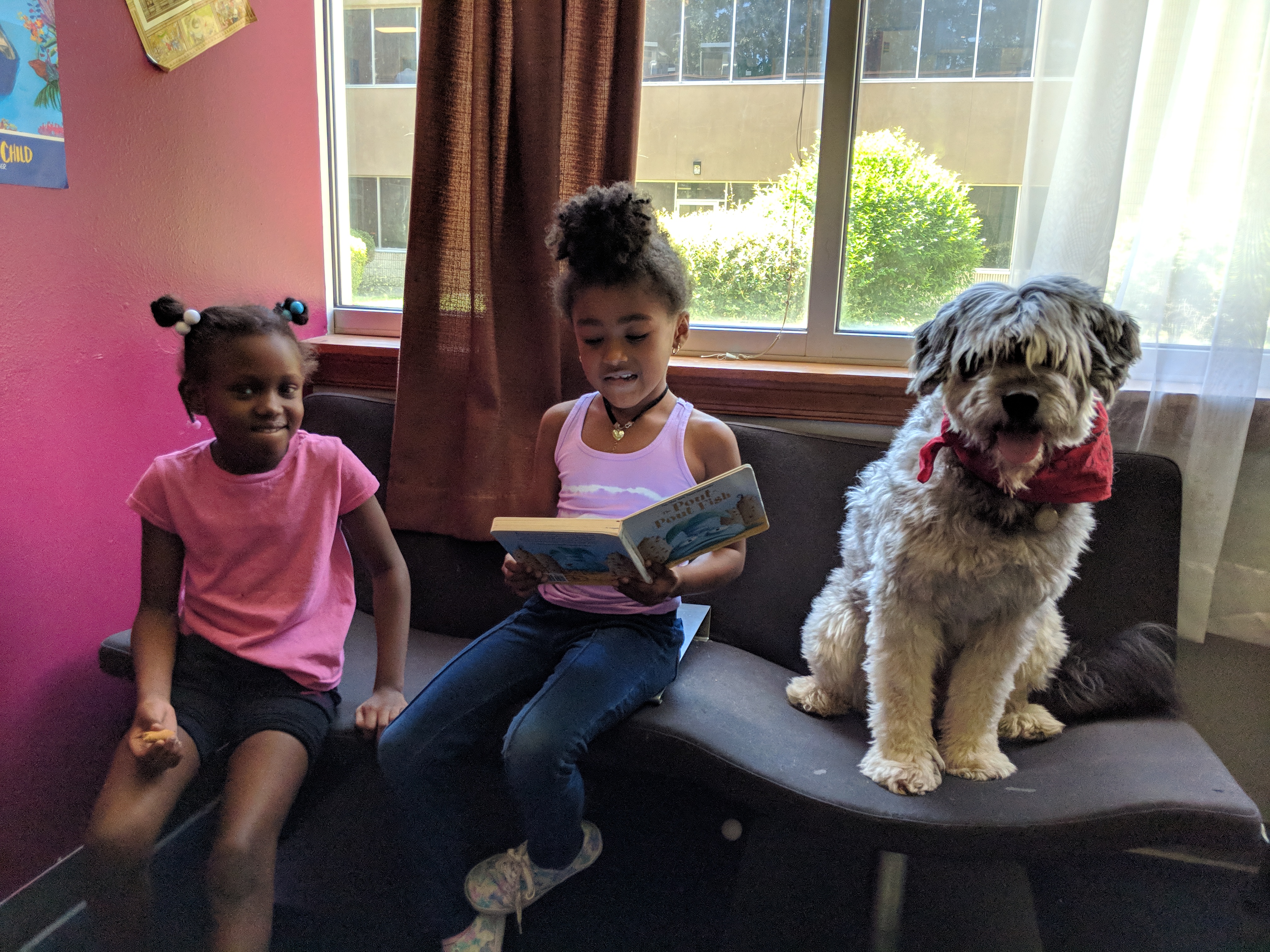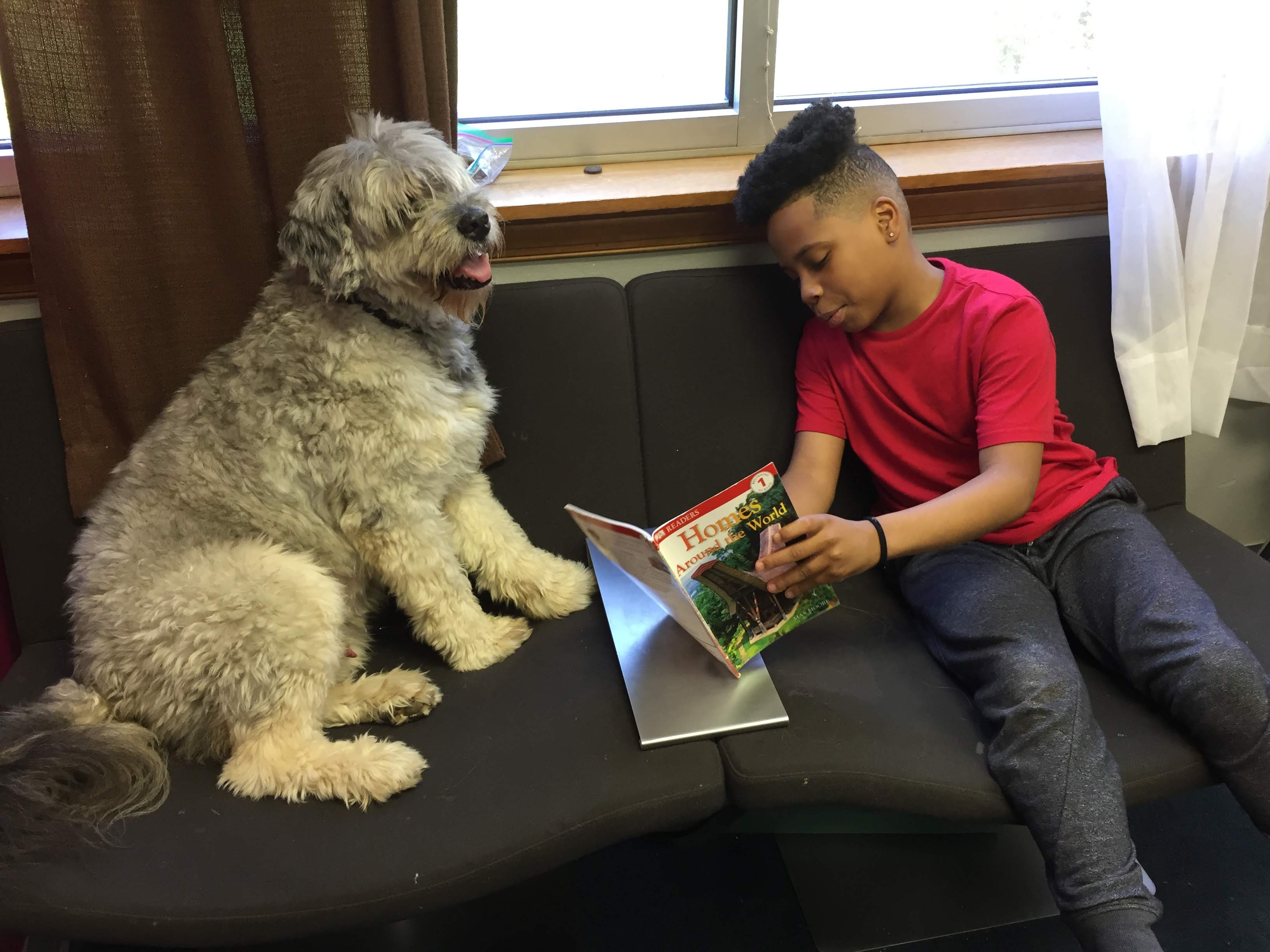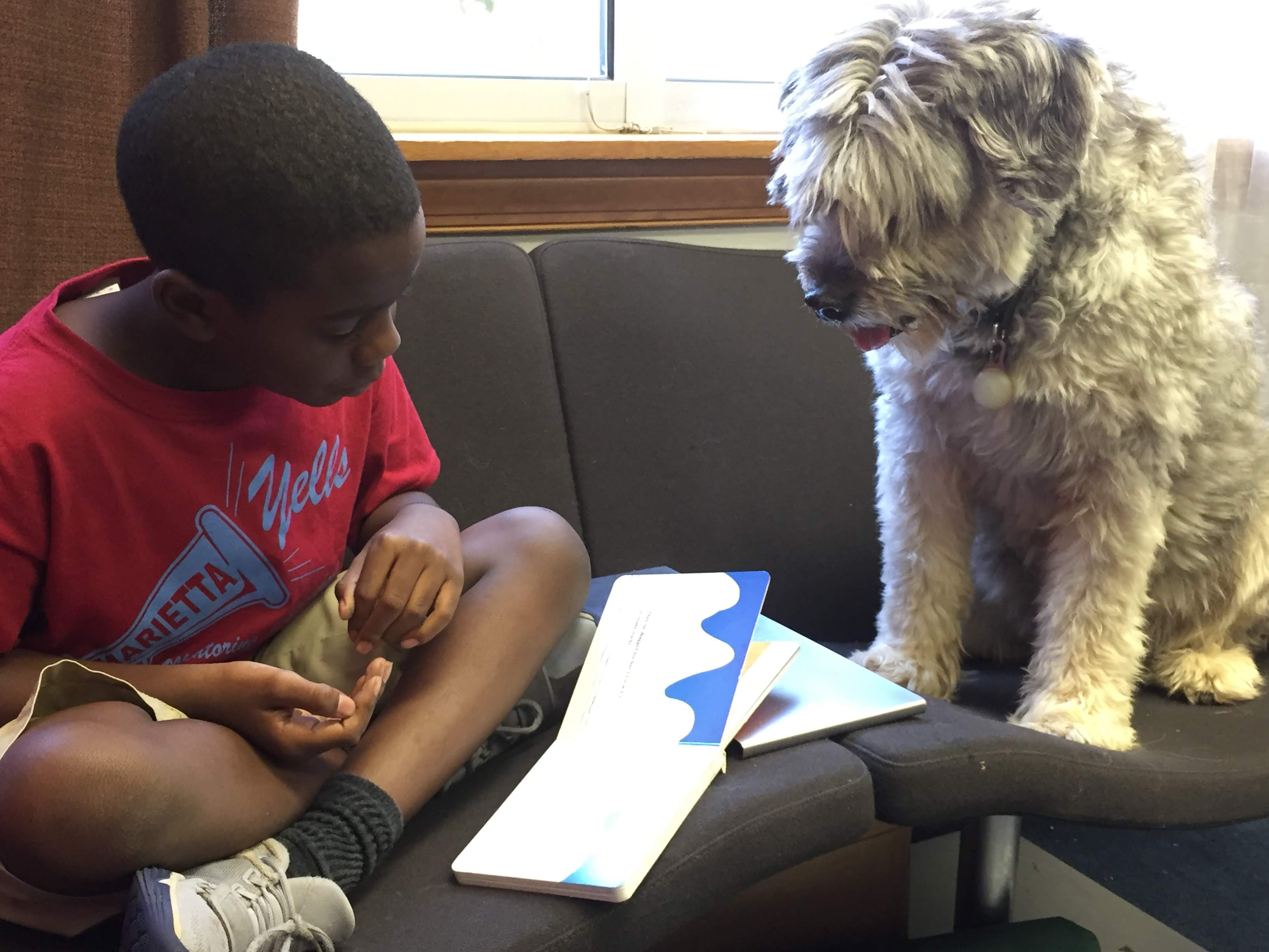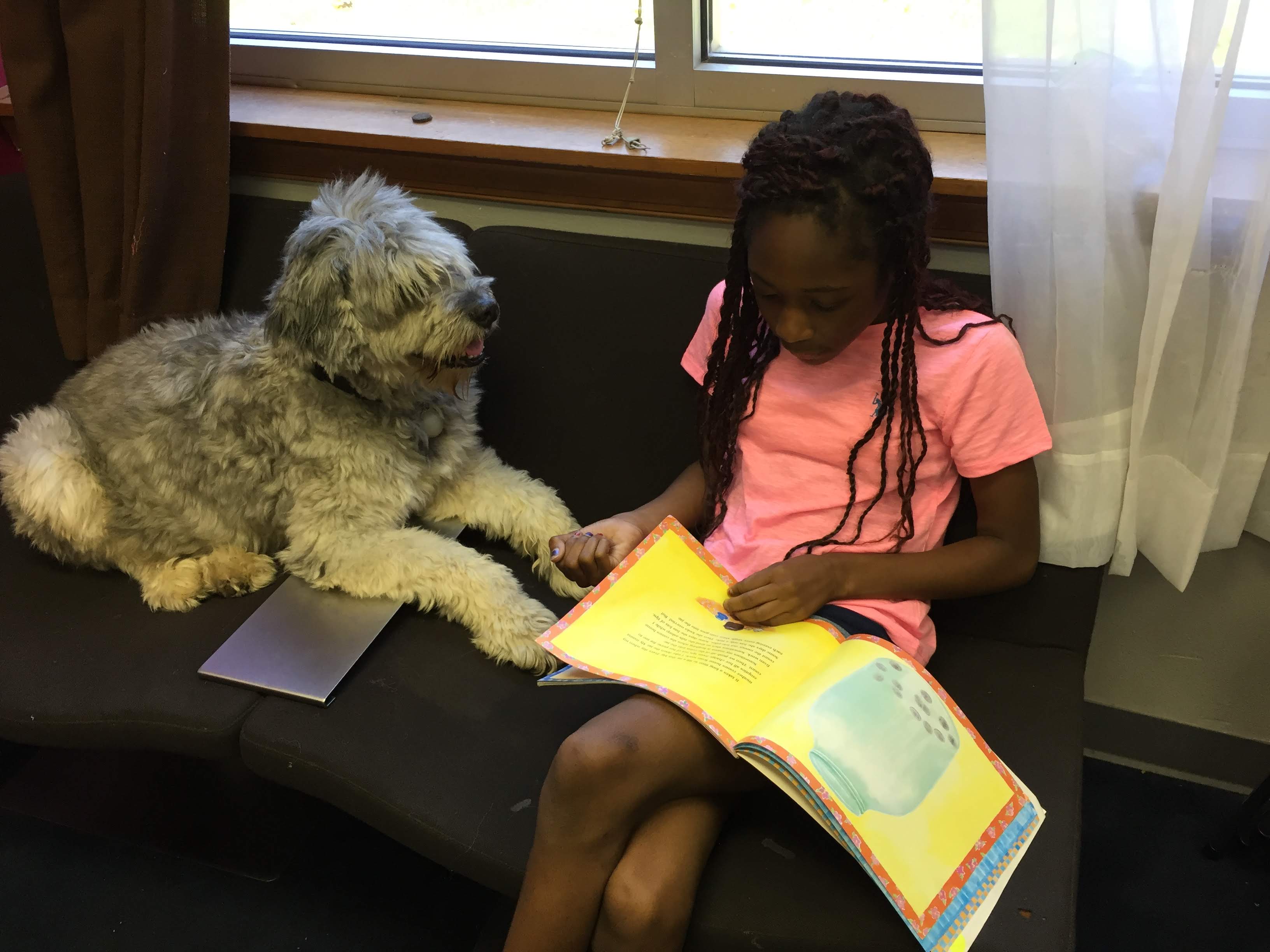 Even the family dog can join in the reading fun! We brought our furry YELLS mascot to motivate our kiddos to read even more throughout the summer. Read-alouds are one of the simplest, yet most effective ways for youth to develop reading proficiency. However, youth often feel insecure and self-conscious when reading aloud. We’ve discovered an unconventional approach to overcome these inhibitions to the point that youth beg for the chance to read! Once each week during the summer, the “YELLS Reading Dog,” Flyer, visited YELLS for our young scholars to read to one-on-one. Flyer made reading becomes a treat, and this will impact students’ reading attitudes for life.