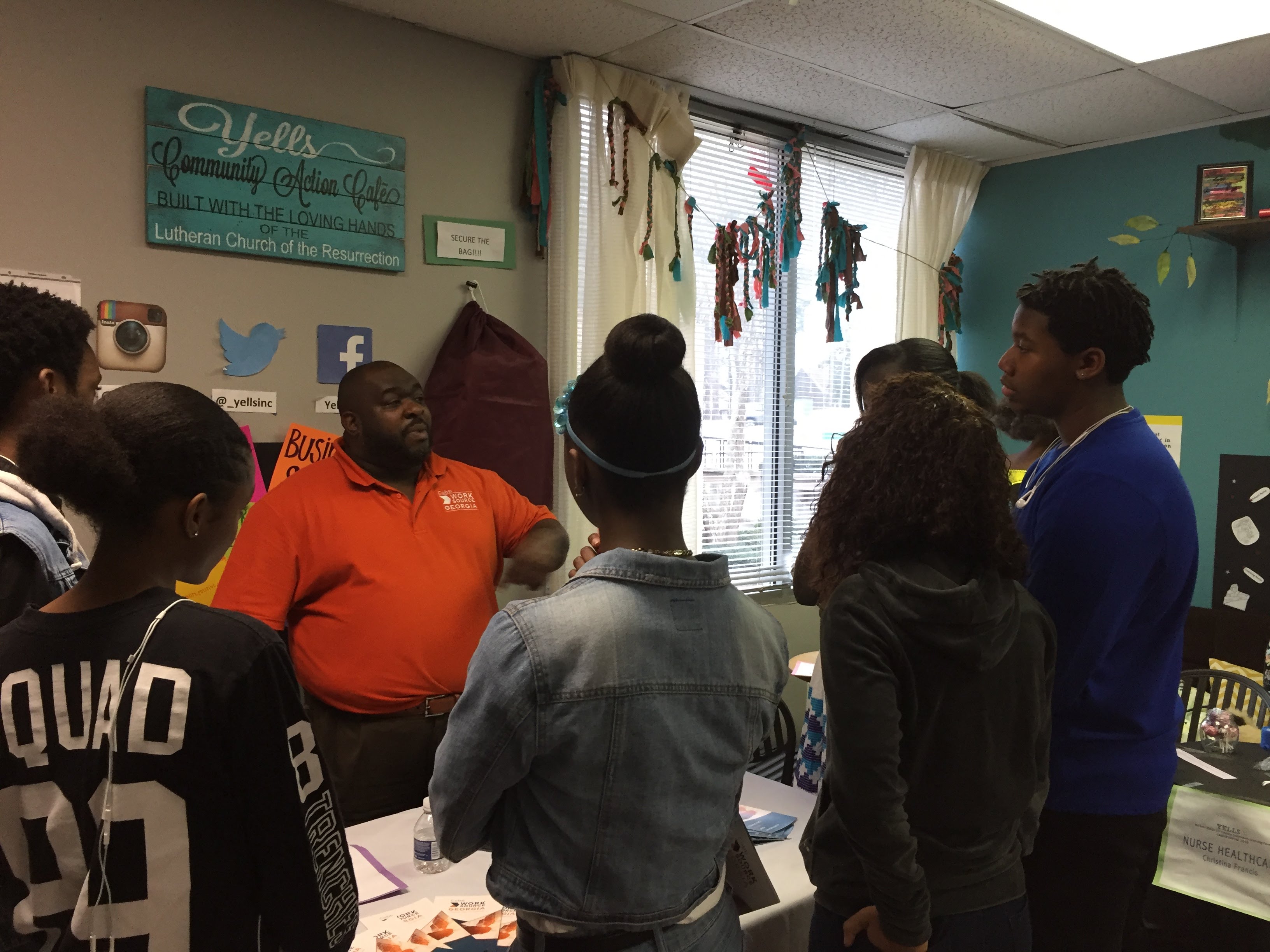 You could see the smiles, hear the eager questions, and feel the energy in the room as our YELLS Community Action Cafe teens – or “Business Scholars” as we call them – interacted with professionals in their career fields of interest. The first annual Career Expose provided the motivation our students needed to fuel their hard work in school and provide direction for their educational journeys.