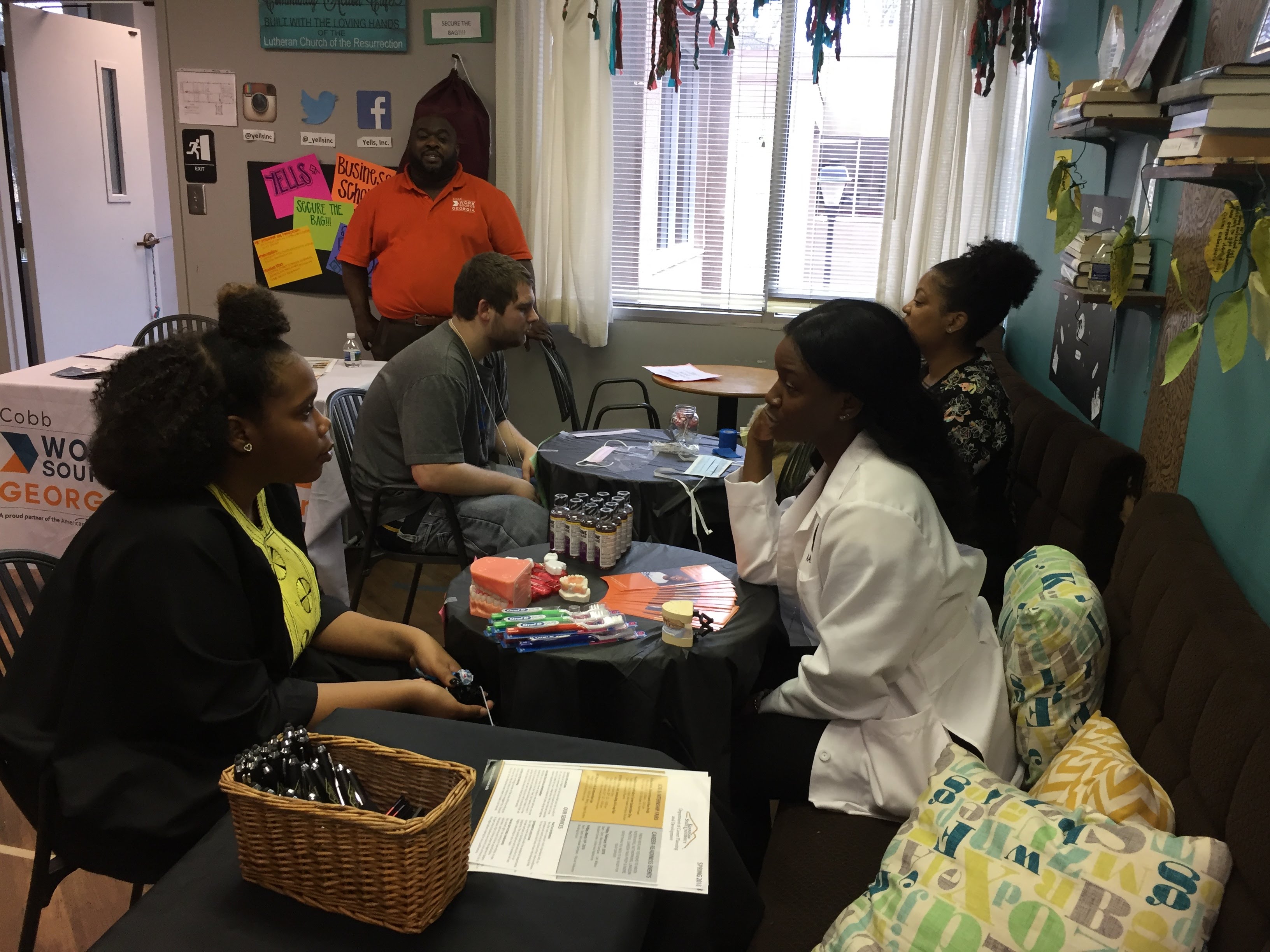 Professionals came from all over Georgia to share their stories with our YELLS teens. Not only did our YELLS Scholars get to visit representatives from different professions like a typical career fair, but they also had the opportunity to spend more time delving deeper with business and professional leaders in the careers that interested them most. Our Scholars learned about the educational journey that led guests to their line of work, and also the requirements for pursuing that track. The students were enlightened and were able to visualize themselves in some of the professions presented. Dr. Shayla Brown, a dentist, came all the way from Albany, Georgia to meet with the teens. One of the teens stated, “I’ve never met a black woman dentist.” It was important for our students to see professionals that look like them. They were inspired and learned that higher education and the various careers can be their reality.