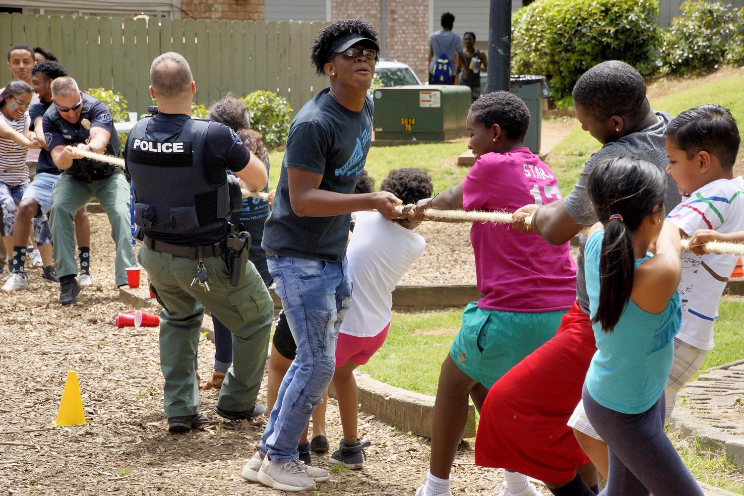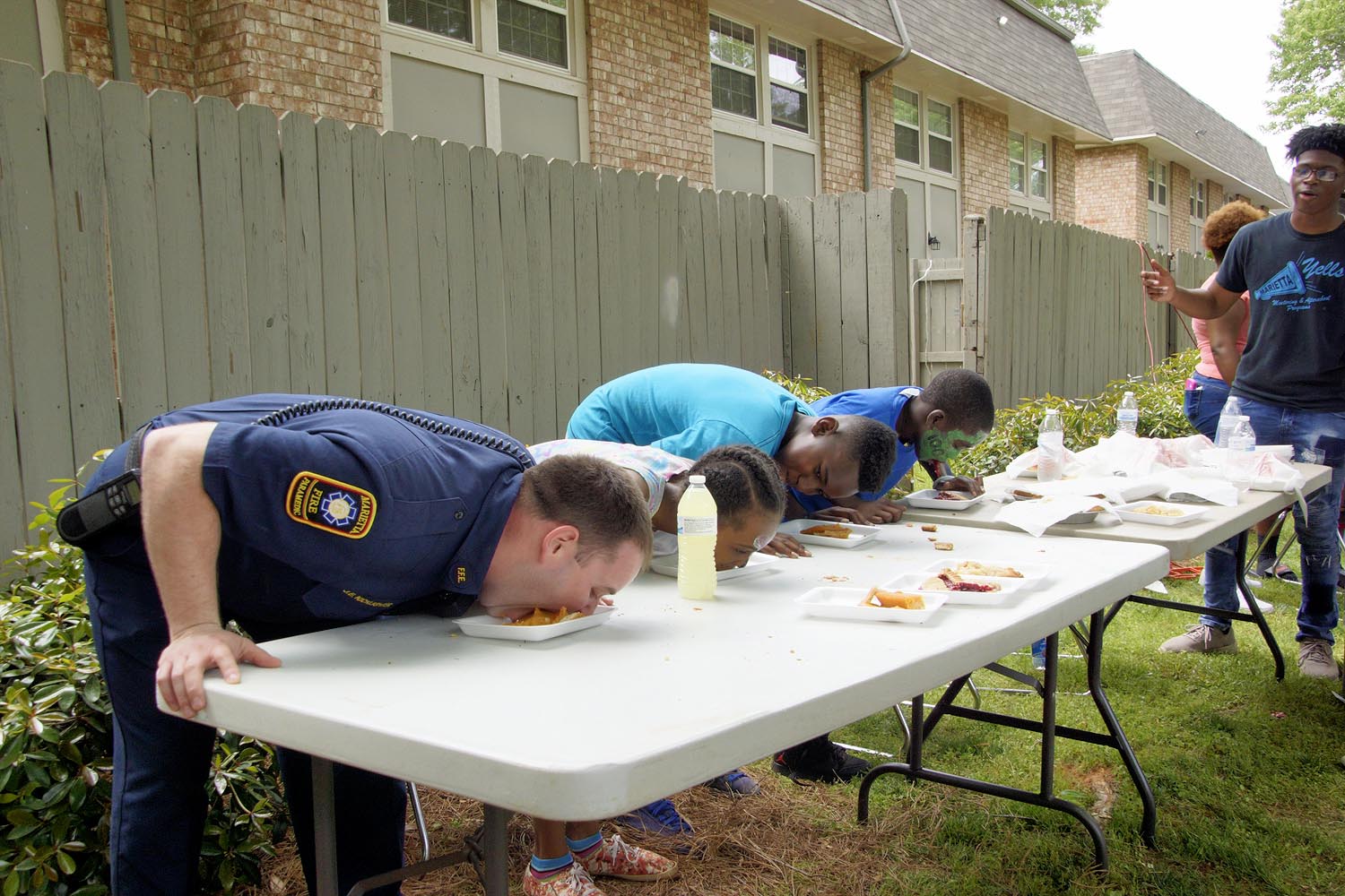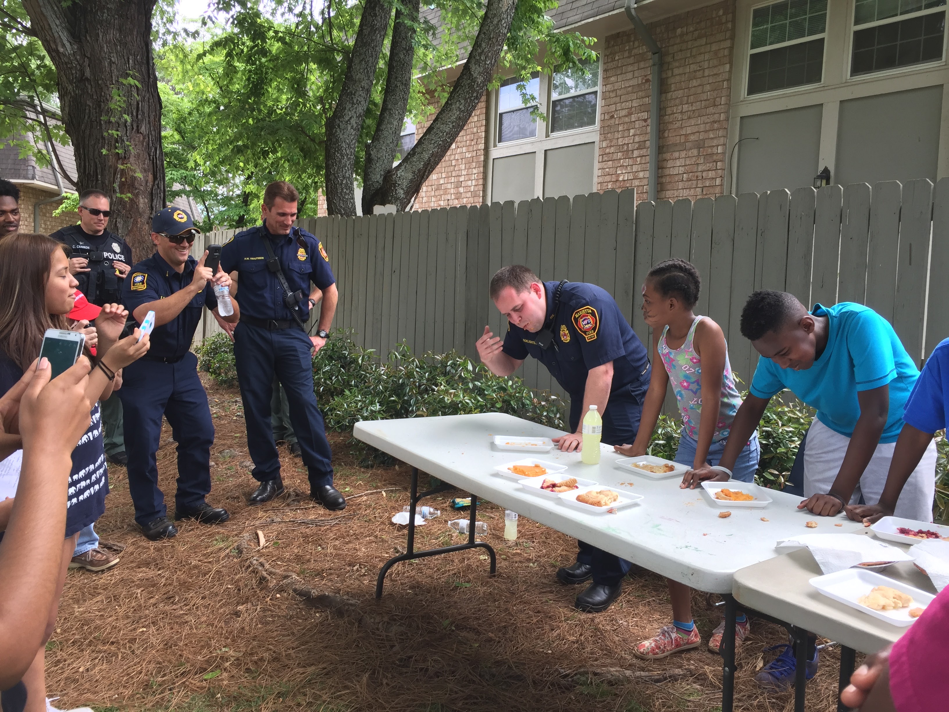 This year, our Marietta Police Department and Marietta Fire Department partners were great sports! They participated alongside neighborhood kids in a pie eating contest, water balloon toss, and definitely took the prize in tug-of-war.