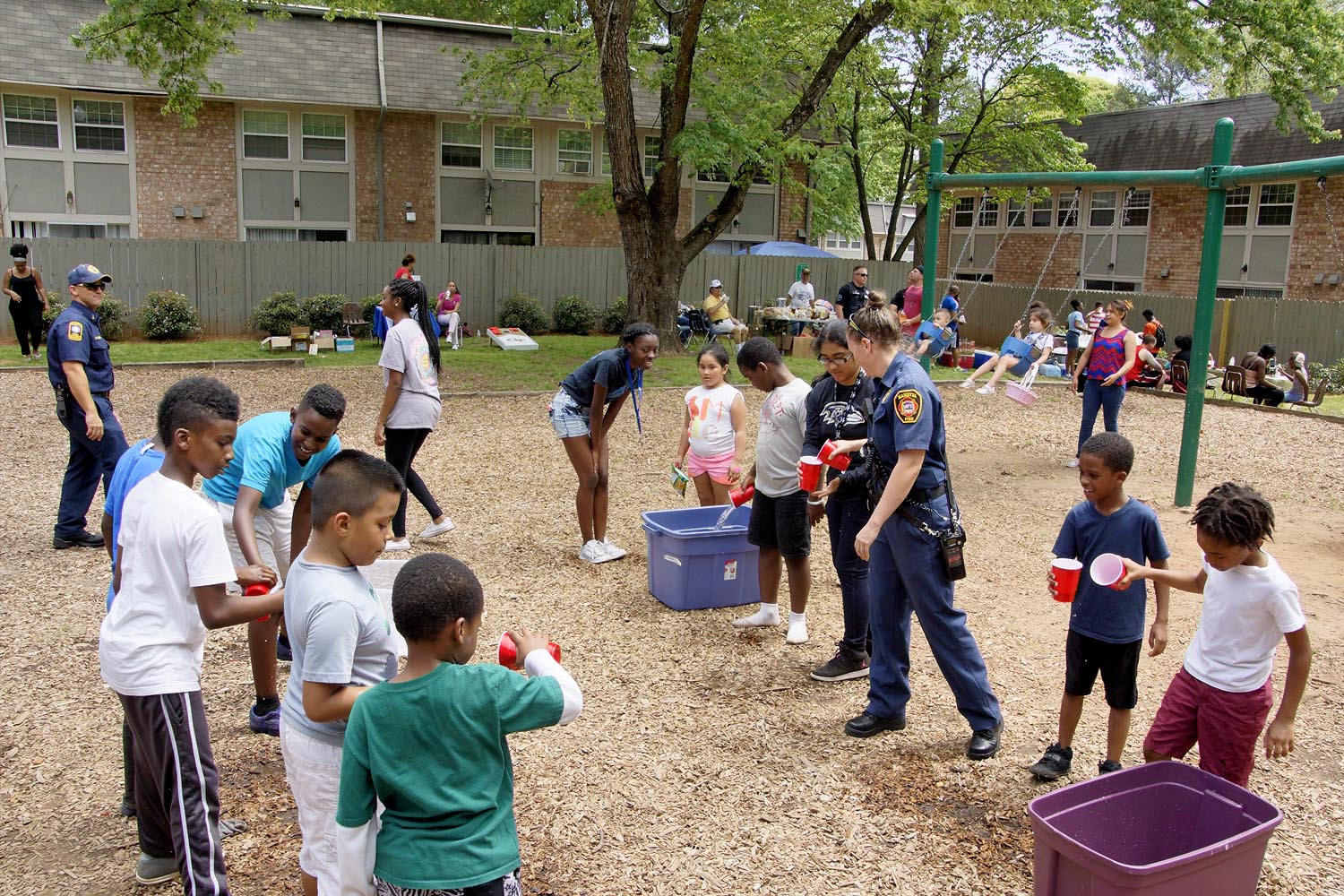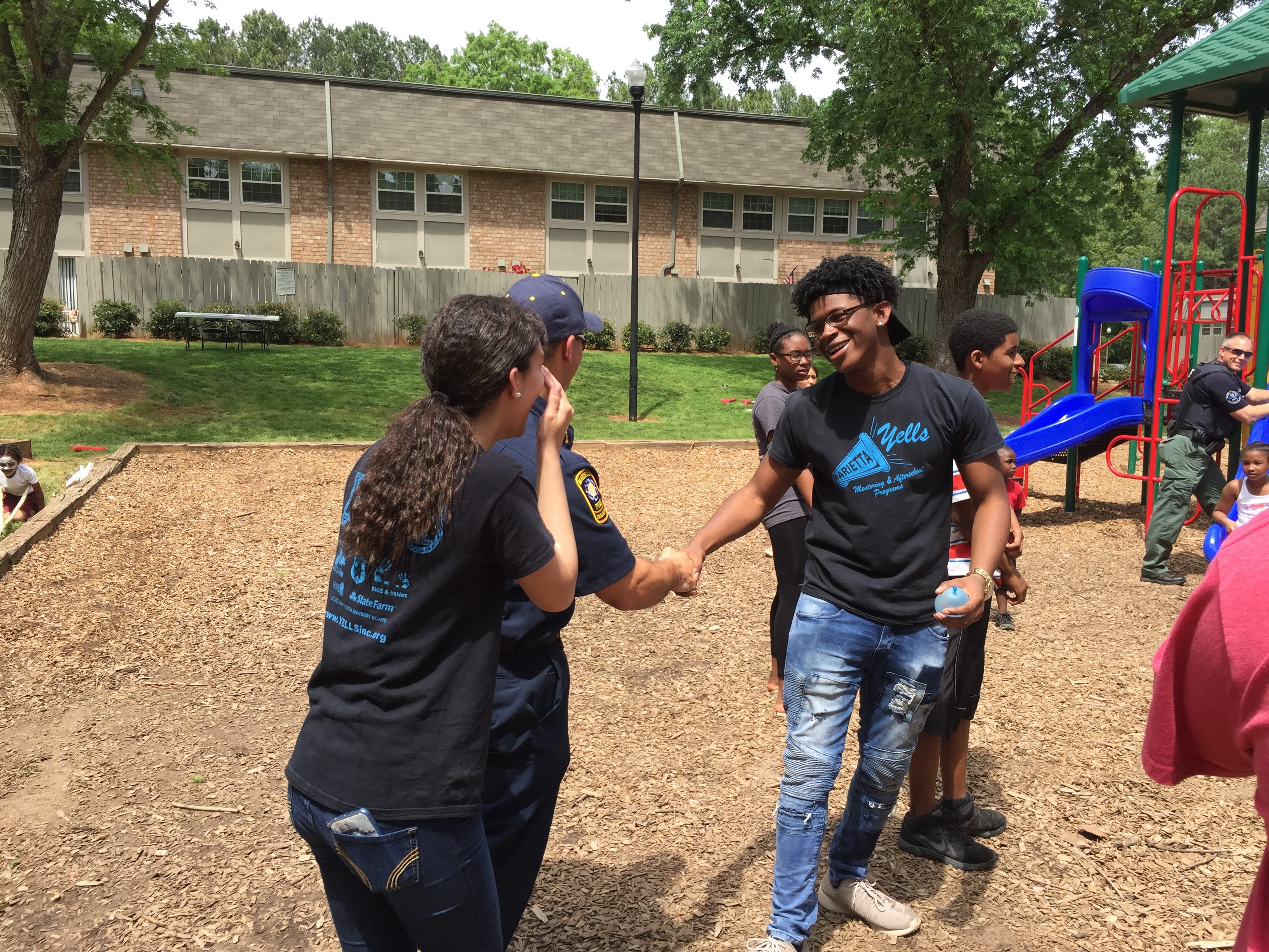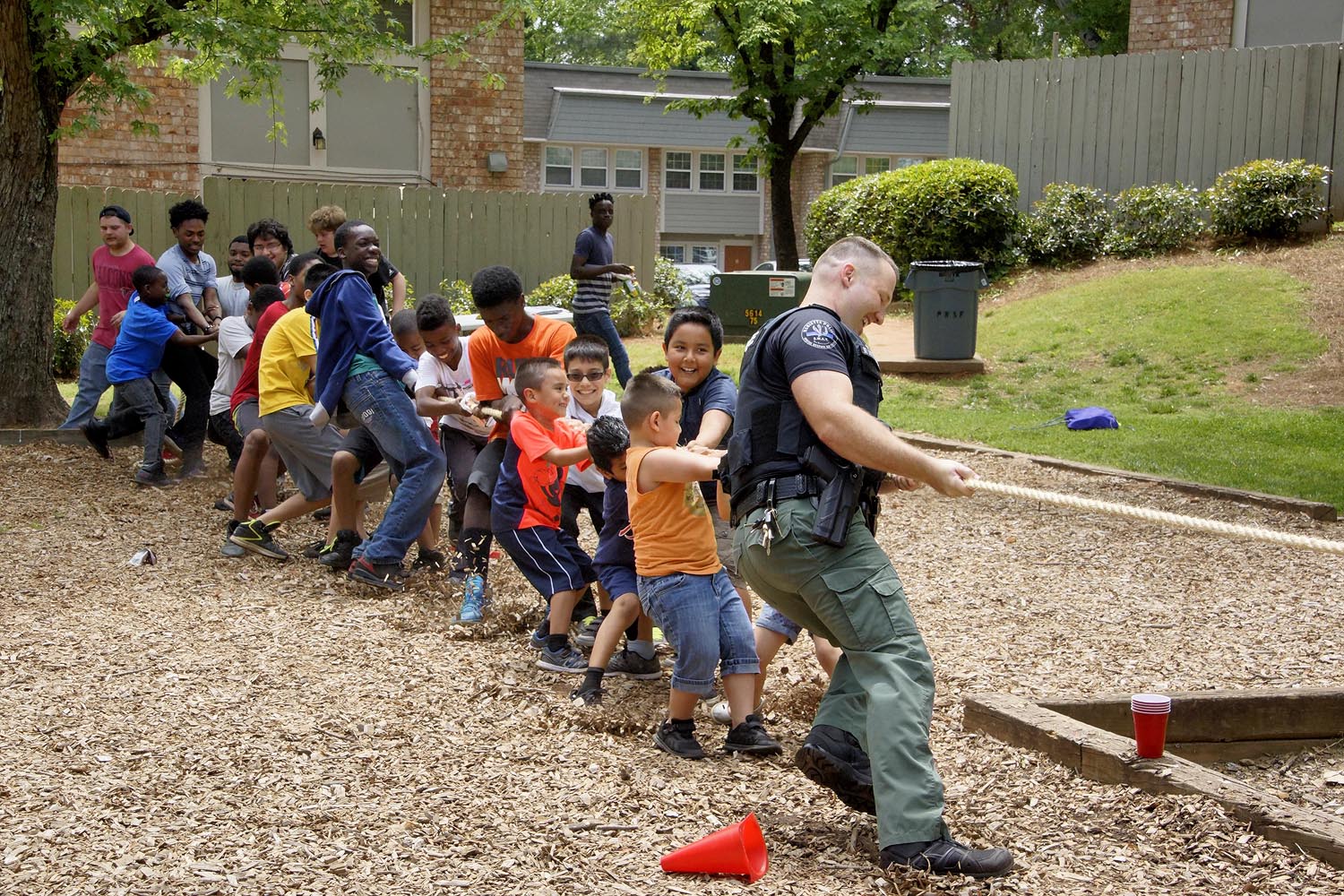 This year, our Marietta Police Department and Marietta Fire Department partners were great sports! They participated alongside neighborhood kids in a pie eating contest, water balloon toss, and definitely took the prize in tug-of-war.